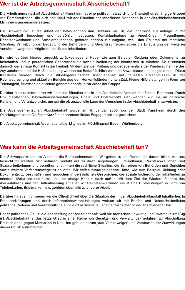 AGA Wir sind Mitglied im Flüchtlingsrat Baden-Württemberg Wir sind auch bei: